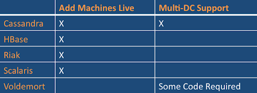 人们使用分布式数据库主要关注两件事情: 1) 是否支持多个数据中心以及2) 能否在对应用透明的前提下往正在运行的集群中添加新机器的能力.