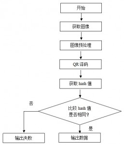 针对QR码伪造的问题,可使用常用的加密方法和消息鉴别码的方法,在原有的二维码编码解码时加入加密和解密的环节。以非对称加密为例,假设原始信息为M0,发行方的私钥为Kr,公钥为KU,则M’=EKr(M)。将M’信息使用QR编码器编码,将生成后的二维码和公钥刊登在印刷品上,用户扫描QR码时输入公钥KU,若能解码得到正确可读的信息,则说明扫描的QR码来源可靠。非对称加密方式不仅能够抵抗上树应用场景的攻击,还能够抵抗大部分针对QR码信息的篡改行为。另一种简化方式是在QR码中加入加密后的hash值模块,解码时,解码器解密hash值并比对是否与原QR码信息匹配,如果7所示。而抵挡QR码的泄漏可采用对称加密的方法,加密后的QR码只有密钥持有人才能正常解码,特对对象可以正常使用QR码,比如火车票上的二维码。