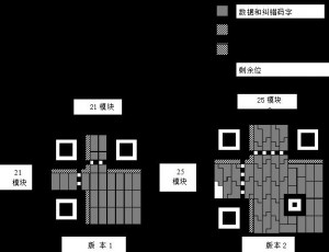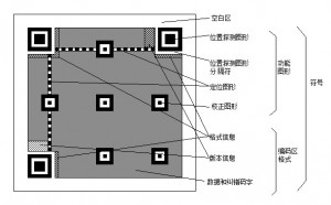 每个QR码由寻景图案、校准图案、定位图案等功能图案和编码区域构成,其中功能图形不用于数据编码。图1为QR码符号的结构,图2为笔者个人的QR二维码结构图。