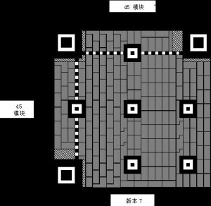 定位图案(Timing Pattern):定位图案在垂直和水平方向进行对齐,其用于识别QR码中的的每个单元的中心坐标,使得黑色和白色图案分别对应。在二维码出现扭曲时,这个定位图案用于纠正单元中的中心坐标。