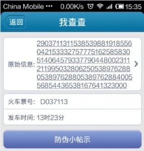随即笔者问朋友要了一张高铁票(2013年的)用我查查软件扫描,没有结果。